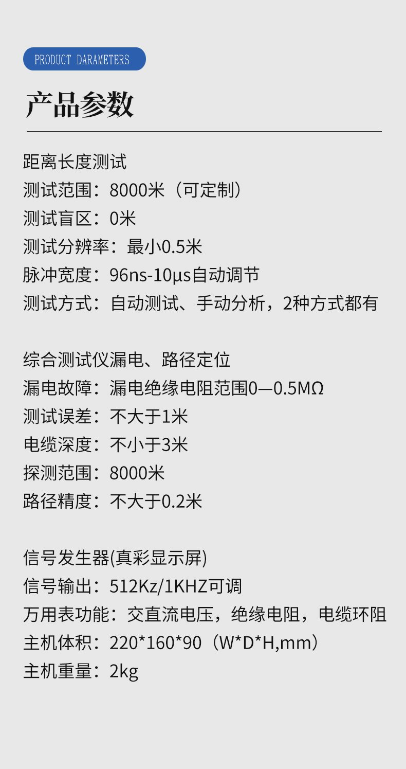 適用于路燈電纜維護、農田水澆地電纜故障查修、小區物業及園林綠化帶地埋鎧甲鐵皮電力電纜、野外動力電纜、高速公路、廠礦企業、鐵塔通信基站直埋供電電纜故障排查等行業。
