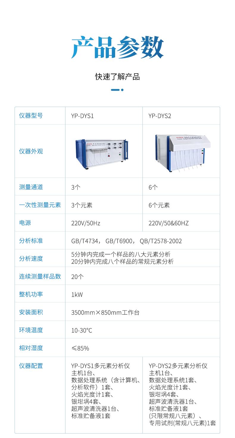 1、YP-DYS2智能多元素快速分析儀主機  壹臺;
