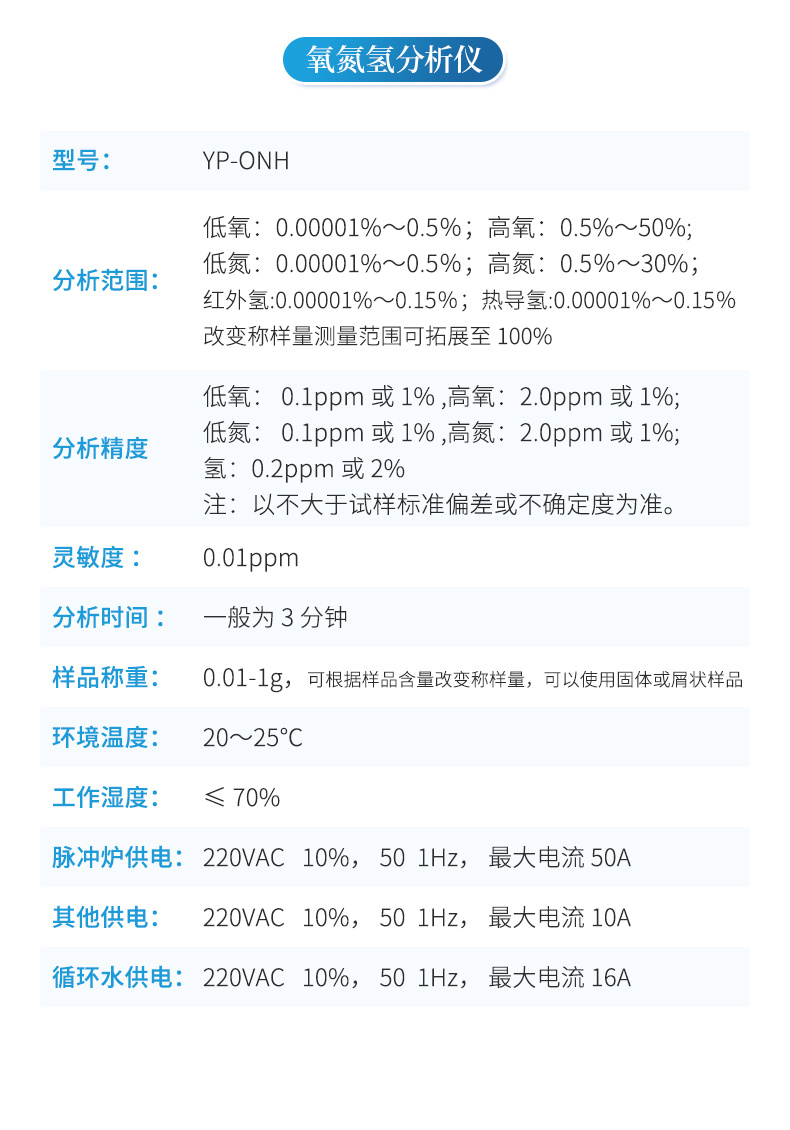 1、氧分析采用非色散紅外檢測(cè)系統(tǒng);氮分析采用高精度熱導(dǎo)檢測(cè)系統(tǒng);氫分析采用非色散紅外檢測(cè)系統(tǒng)或者高精度熱導(dǎo)檢測(cè)系統(tǒng)。