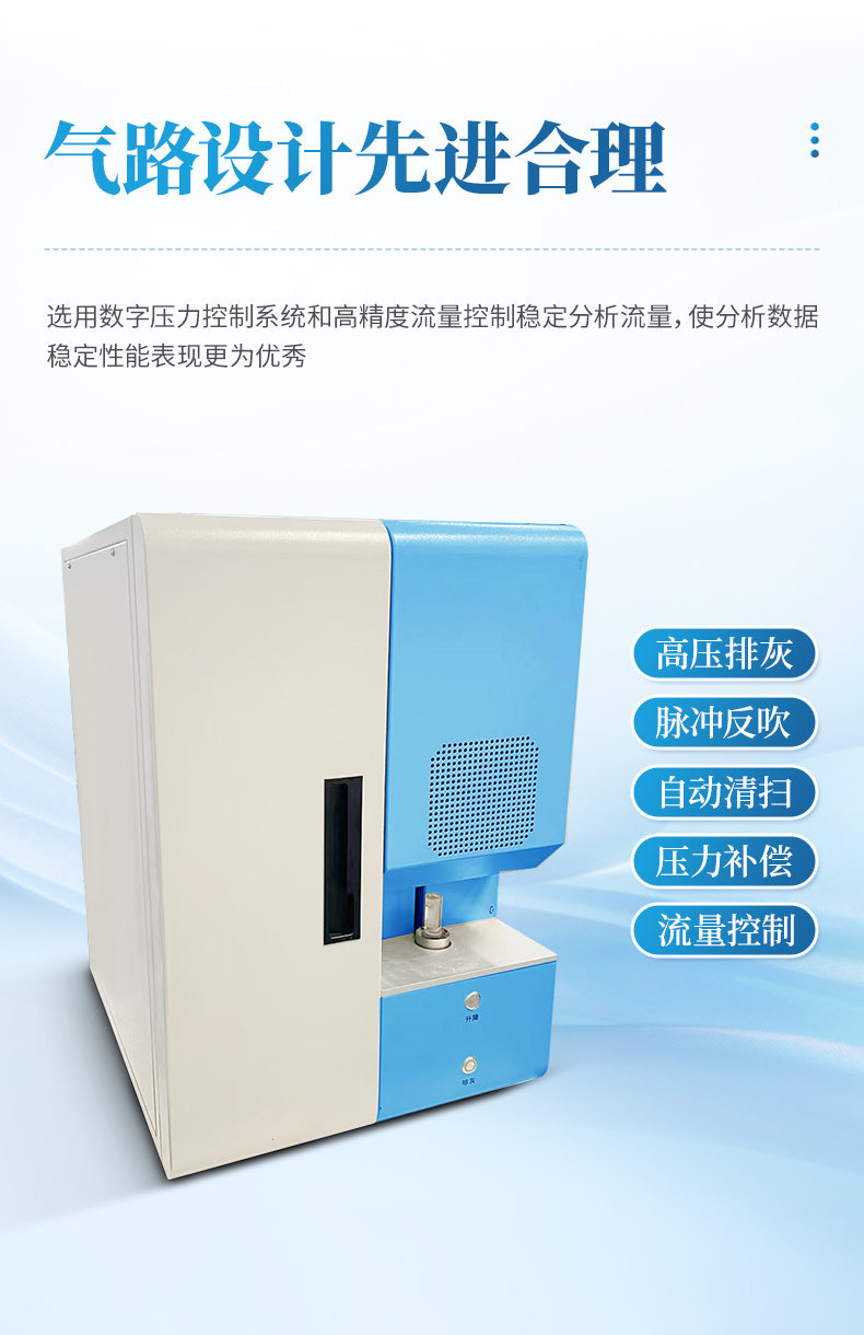 2、進(jìn)樣系統(tǒng)設(shè)計(jì)上采用開(kāi)放式,其優(yōu)點(diǎn)為污染物從爐頂排出,不進(jìn)入系統(tǒng) ,操作方便,對(duì)系統(tǒng)密封要求不高. (采用封閉式,氣路通過(guò)一個(gè)價(jià)格昂貴的六通閥來(lái)控制,內(nèi)部脫出。(有的公司進(jìn)樣裝置復(fù)雜,有兩個(gè)汽缸,如樣品卡住,需把汽缸打開(kāi),很難取出)。采用微流量傳感器達(dá)到高精度流量控制,將分析氣流變化對(duì)分析帶來(lái)的影響降到了最低。氣轉(zhuǎn)換都通過(guò)此閥, 使得該閥易壞,灰塵等污染物也容易帶入系統(tǒng)內(nèi)部)。這種進(jìn)樣裝置簡(jiǎn)單,且可自動(dòng)進(jìn)樣,萬(wàn)一樣品卡住了,容易取出。