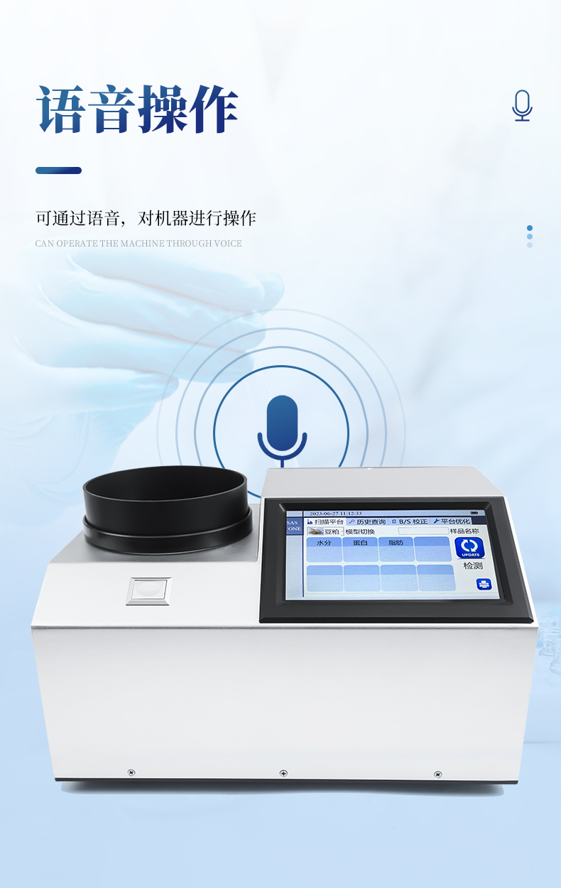 本儀器YP-GP200為近紅外光譜分析儀,可以根據近紅外光線照射樣品產生的光譜,快速分析不同物質中成分的種類(如蛋白、水分、油脂、纖維、灰分等)及含量,并可根據客戶需求添加模型。