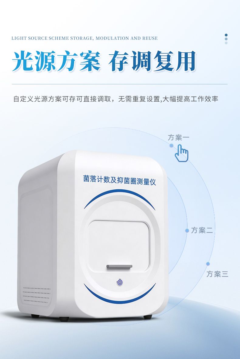 本產品是一款集圖像采集、數據處理與統計分析于一體的菌落計數及抑菌圈測量儀,廣泛應用于食品、藥品、化妝品、環境監測、醫療衛生、科研院校等領域。儀器采用先進的數字圖像處理技術,具備熒光菌識別、抑菌圈測量及效價測定和殺菌功能,可快速精準完成培養皿內菌落的測量分析、抑菌圈測量及抗生素效價測定,大幅提升實驗效率,有效降低人工操作誤差。