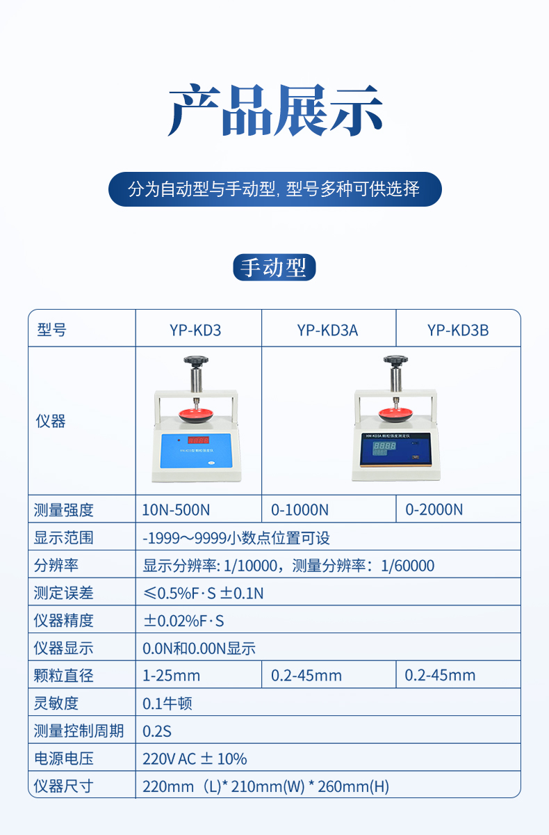 儀器采用先進的微電腦控制,自動完成加力、測量、顯示、最大強度值的鎖定及復位等操作,具有自動調零、自動判斷樣品破碎時的壓力值、直接顯示每次被測量樣品的顆粒強度值。是催化劑、化肥、藥品、水果等顆粒樣品聚合強度測定最理想的新型試驗儀器。