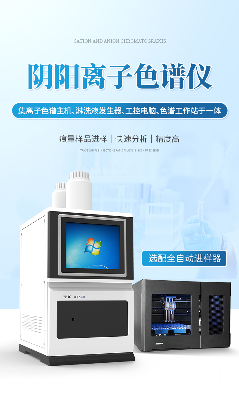 YP-IC-離子色譜儀核心零部件自主研發、自主知識產權可控。采用一體化設計,集離子色譜主機、淋洗液發生器、工控電腦、色譜工作站于一體,結構緊湊,流路最短,對流路造成的峰型擴展有很好的改善。一體化恒溫箱:色譜柱、抑制器、電導池、放大電路都處于同一恒溫系統,改善了電導檢測器的溫飄和基線噪聲。內置多處漏液報警器和缺水報警器,全方位安全監控。由PLC控制的各個部件統一到電腦顯示屏的集中軟件控制系統,操作方便,鼠標所見即所控。