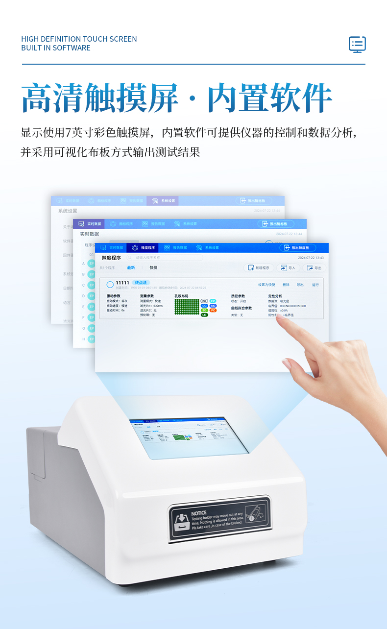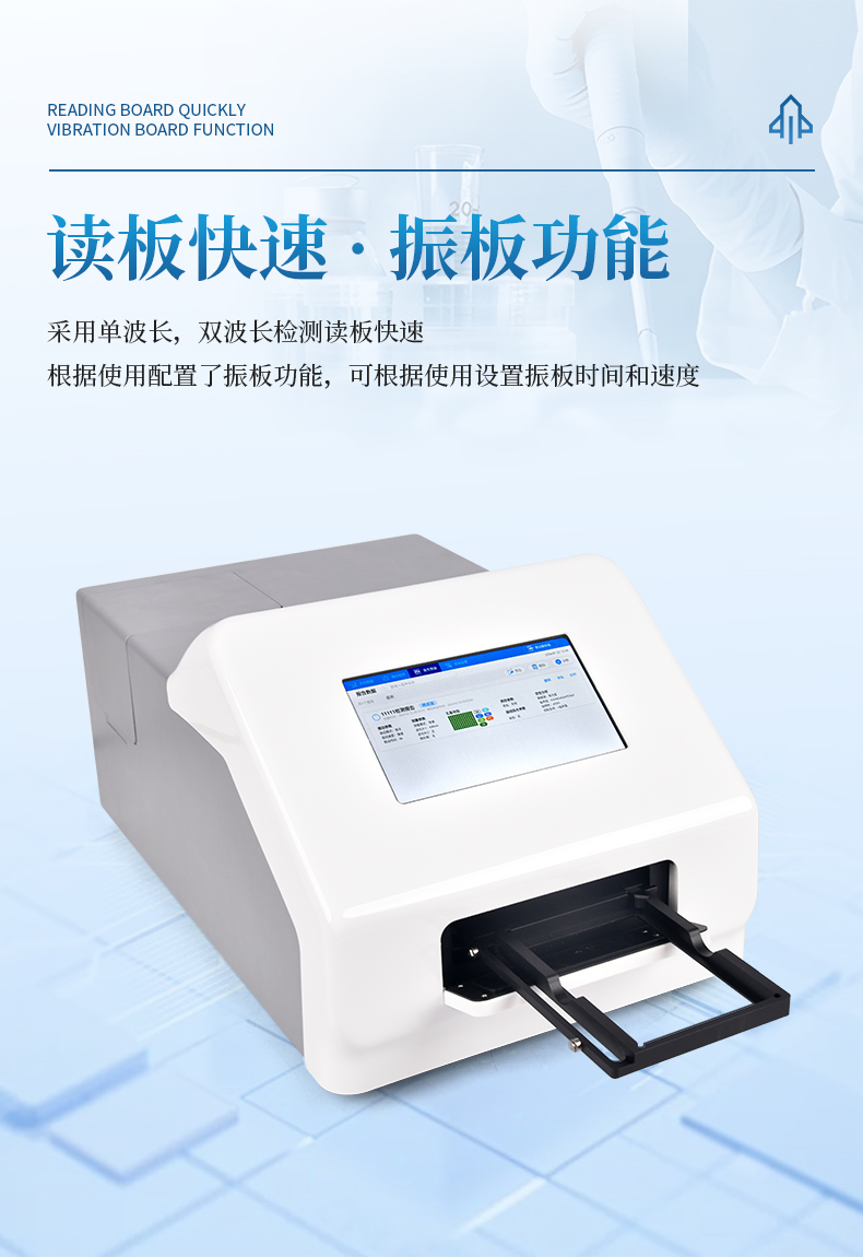 讀板快速:采用單波長(zhǎng),雙波長(zhǎng)檢測(cè)讀板快速;