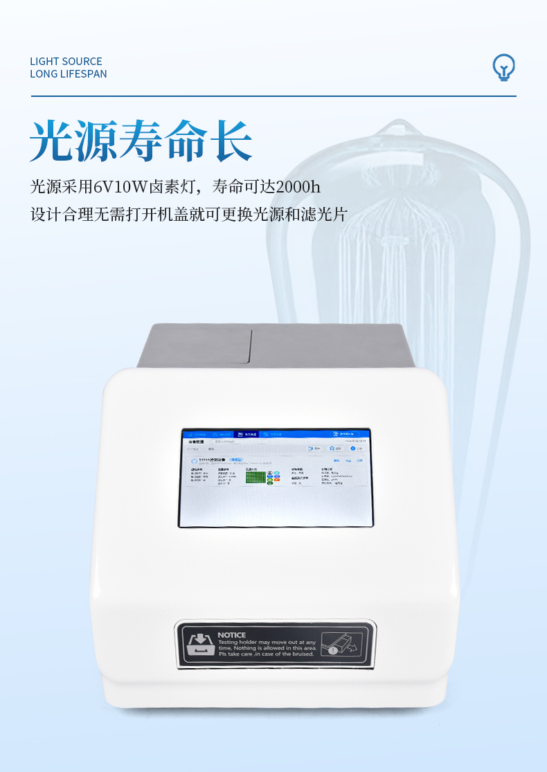 光源壽命長(zhǎng): 光源采用6V10W鹵素?zé)?,壽命可達(dá)2000h;