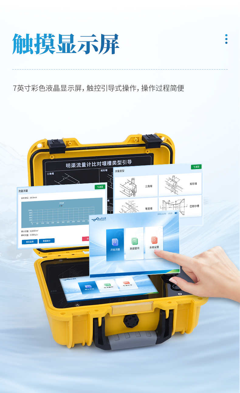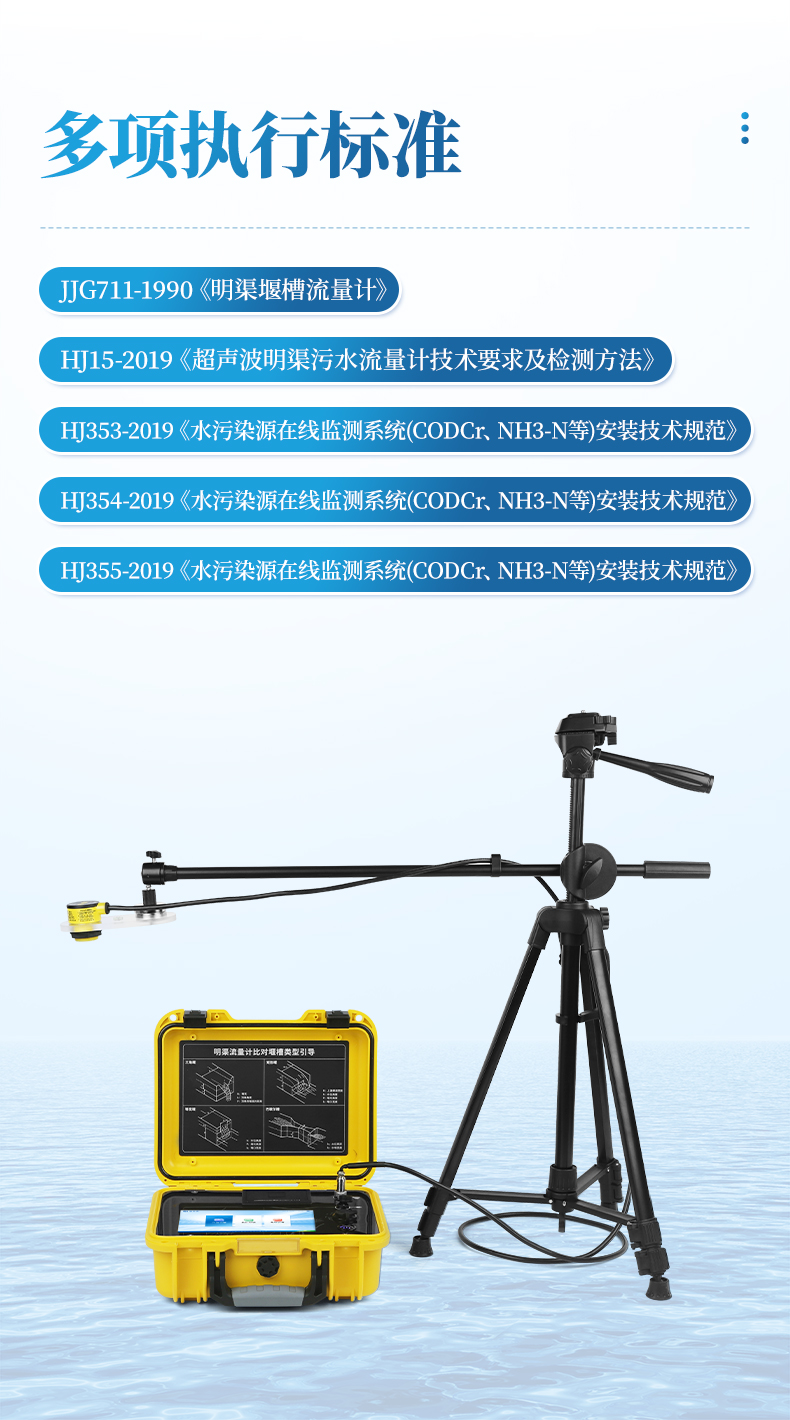 便攜式明渠流量計(jì)是專為水文監(jiān)測(cè)、江河流量監(jiān)測(cè)、農(nóng)業(yè)灌溉及市政給排水等行業(yè)設(shè)計(jì)的一種高精度測(cè)量?jī)x表,它采用超聲波技術(shù)和特殊的微功耗設(shè)計(jì)方案,結(jié)合全數(shù)字信號(hào)處理技術(shù),確保了測(cè)量的穩(wěn)定性與可靠性。該設(shè)備具有廣泛的測(cè)量范圍和較高的測(cè)量精度,支持實(shí)時(shí)數(shù)據(jù)顯示、數(shù)據(jù)記錄、導(dǎo)出及打印等功能,操作簡(jiǎn)便且準(zhǔn)確度高,非常適合于需要頻繁移動(dòng)進(jìn)行測(cè)量的場(chǎng)合。同時(shí),它依據(jù)JJG711-1990檢定規(guī)程,并參照HJ353-2019、HJ354-2019、HJ355-2019以及HJ15-2019中對(duì)流量監(jiān)測(cè)單元的相關(guān)要求進(jìn)行比對(duì)驗(yàn)收,確保了其在水利工程、環(huán)境監(jiān)測(cè)、農(nóng)業(yè)灌溉等領(lǐng)域的適用性和準(zhǔn)確性。