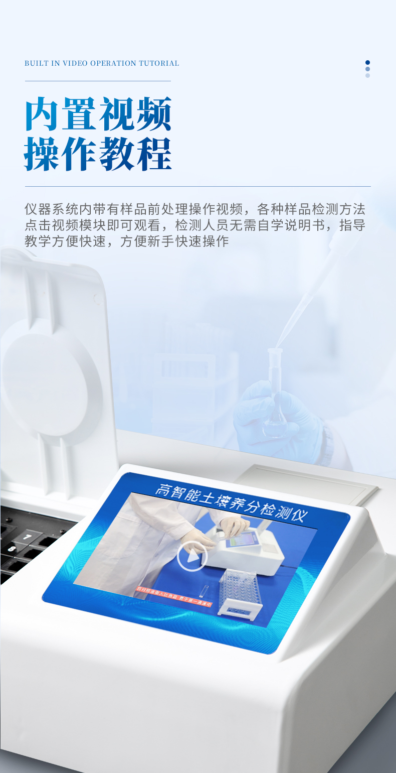 13、儀器系統(tǒng)內(nèi)帶有樣品前處理操作視頻,各種樣品檢測(cè)方法點(diǎn)擊視頻模塊即可觀看,檢測(cè)人員無(wú)需自學(xué)說(shuō)明書(shū),指導(dǎo)教學(xué)方便快速,方便新手快速操作。