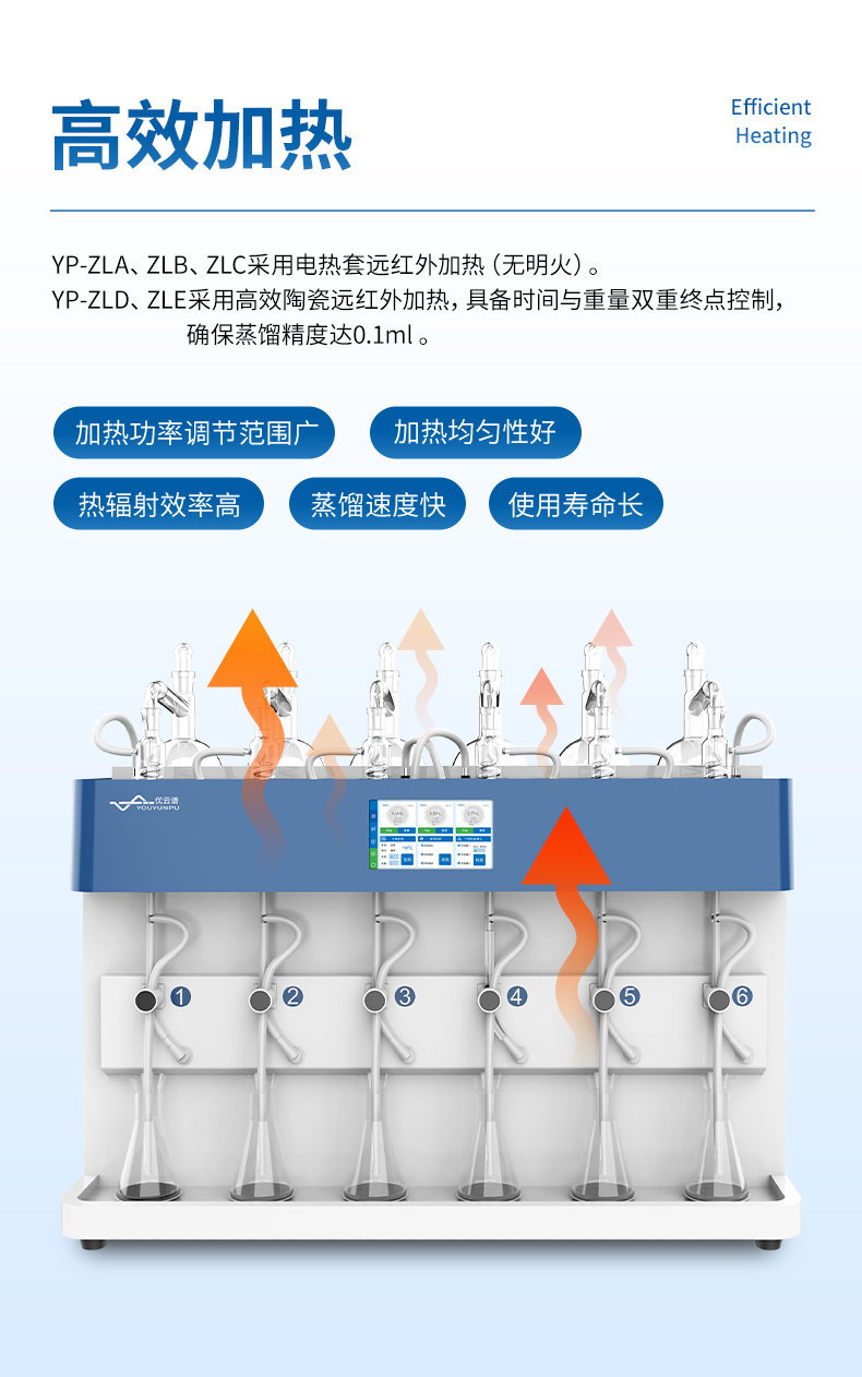 4.精準控制:采用高效陶瓷遠紅外加熱,具備時間與重量雙重終點控制,確保蒸餾精度達0.1ml。