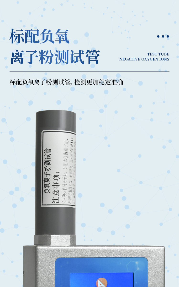 采用“電容式吸入法”原理進行負離子檢測,測量空氣中的負離子濃度值。在離子傳感器(或稱采集桶、采集筒)的極化板(或稱偏壓板)上加載定量的極化電壓,再讓被測空氣按設定速度勻速通過傳感器。空氣中特定的小粒徑負離子在電場的作用下發生偏轉,被采集板所捕獲。采集到的負離子負電荷量經過采集器的處理,即可計算出負離子的電荷濃度值。