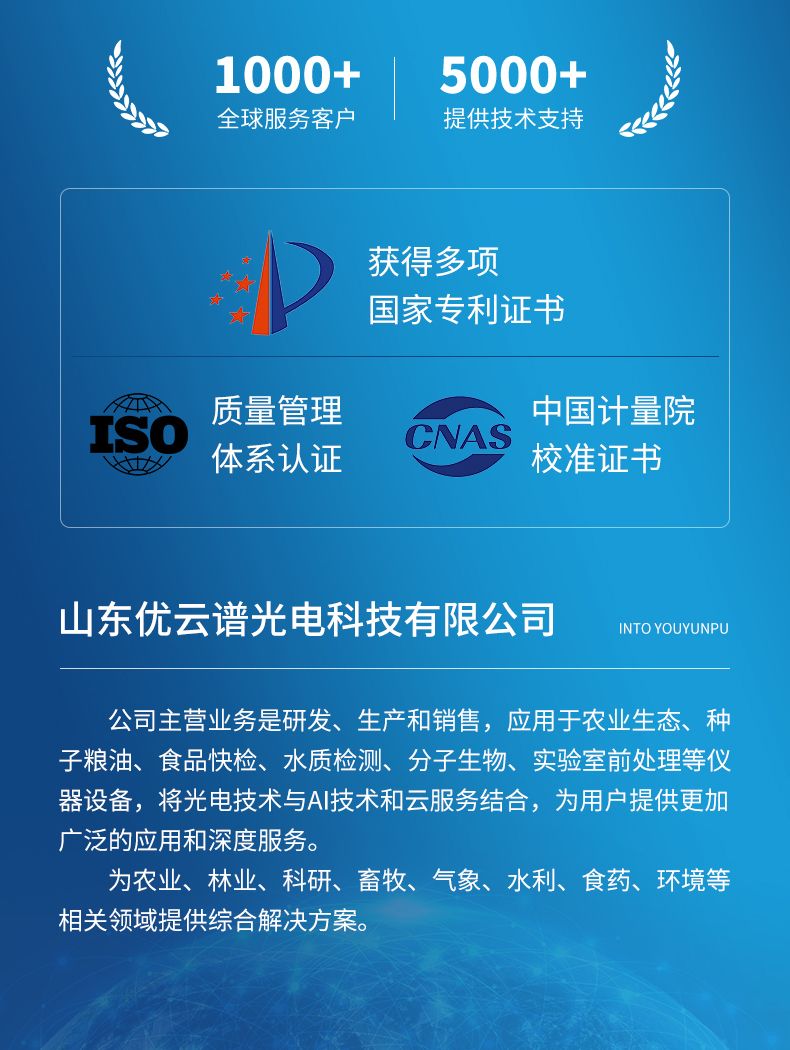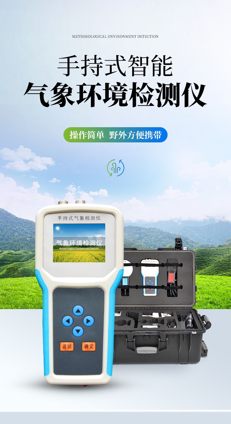手持式智能農業氣象環境檢測儀是我們專門針對農田、草場局部小尺度環境設計的,對與植被和農作物生長密切相關的土壤、水氣等環境參數監測的農田小氣候站。它主要觀測與農業相關的空氣溫度、空氣濕度、光照強度、二氧化碳濃度、露點溫度、光合有效輻射、土壤溫度、土壤濕度等8個環境參數氣象要素,為農業科研、農業生產等提供良好的支持。