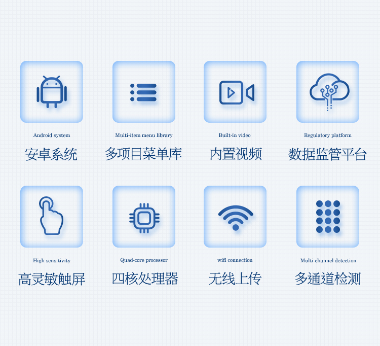 1、安卓智能操作系統,采用更加高效和人性化操作,儀器具有網線連接、wifi聯網上傳、GPRS無線遠傳功能,快速上傳數據。