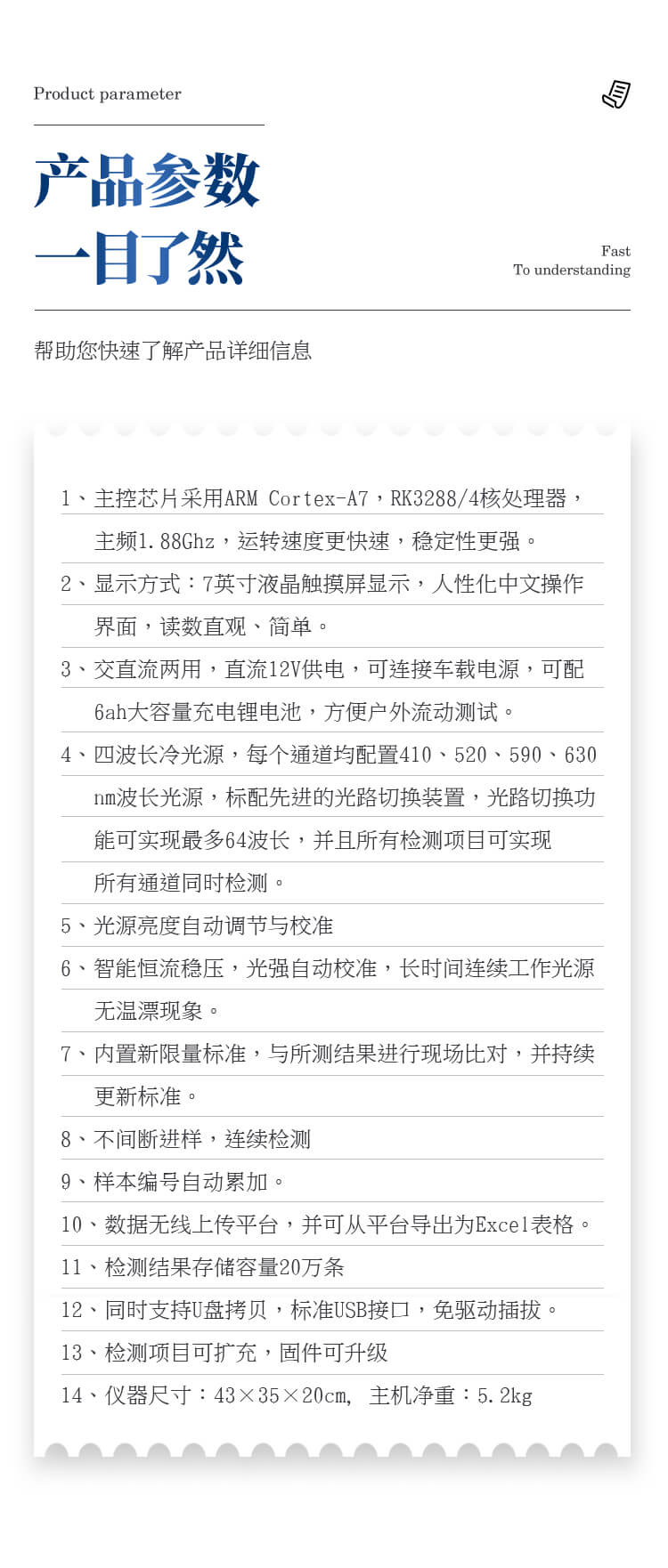 5、一體化便攜式快檢設備,滿足現場及流動檢測使用需求,能夠在同一軟件下實現所有檢測項目的檢測,并可通過同一窗口直觀顯示檢測結果。