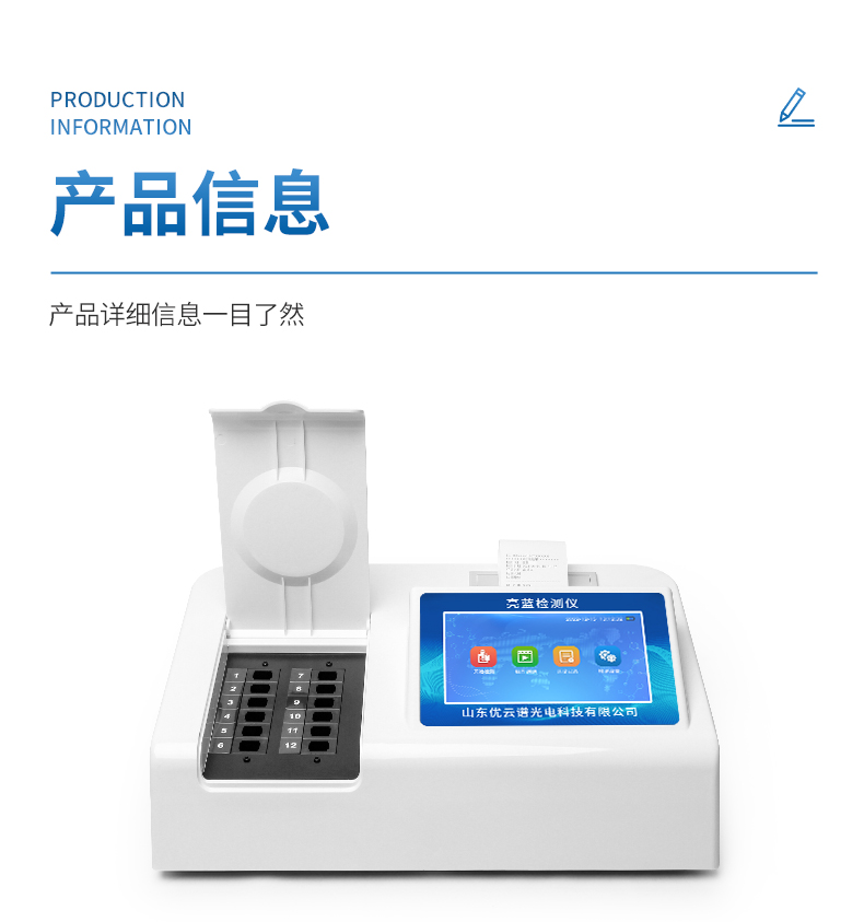 ●帶有嵌入式微型熱敏打印機,直接打印每個檢測通道的測試報告,報告詳細直觀,內(nèi)容:濃度、中文樣品名、檢測日期、檢驗員、檢測單位
