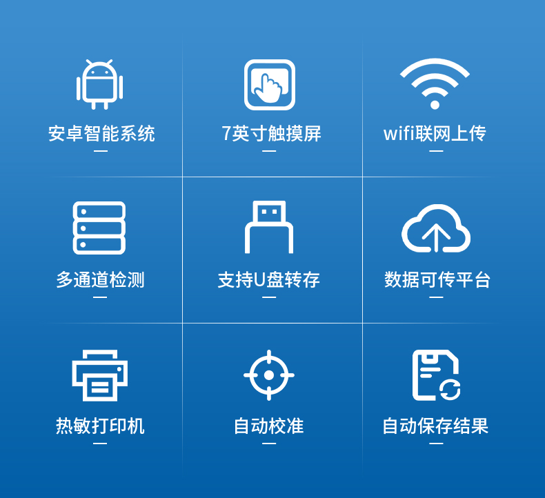 ●安卓操作系統(tǒng),采用更加高效和人性化操作,儀器具有網(wǎng)線連接、wifi聯(lián)網(wǎng)上傳、GPRS無線遠傳功能,快速上傳數(shù)據(jù)。