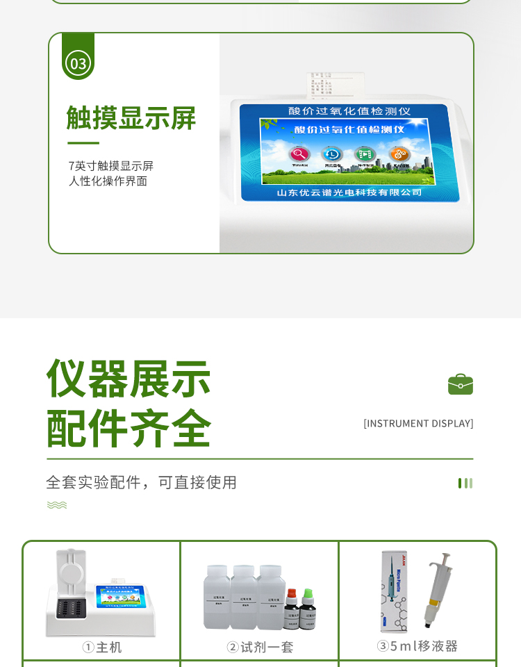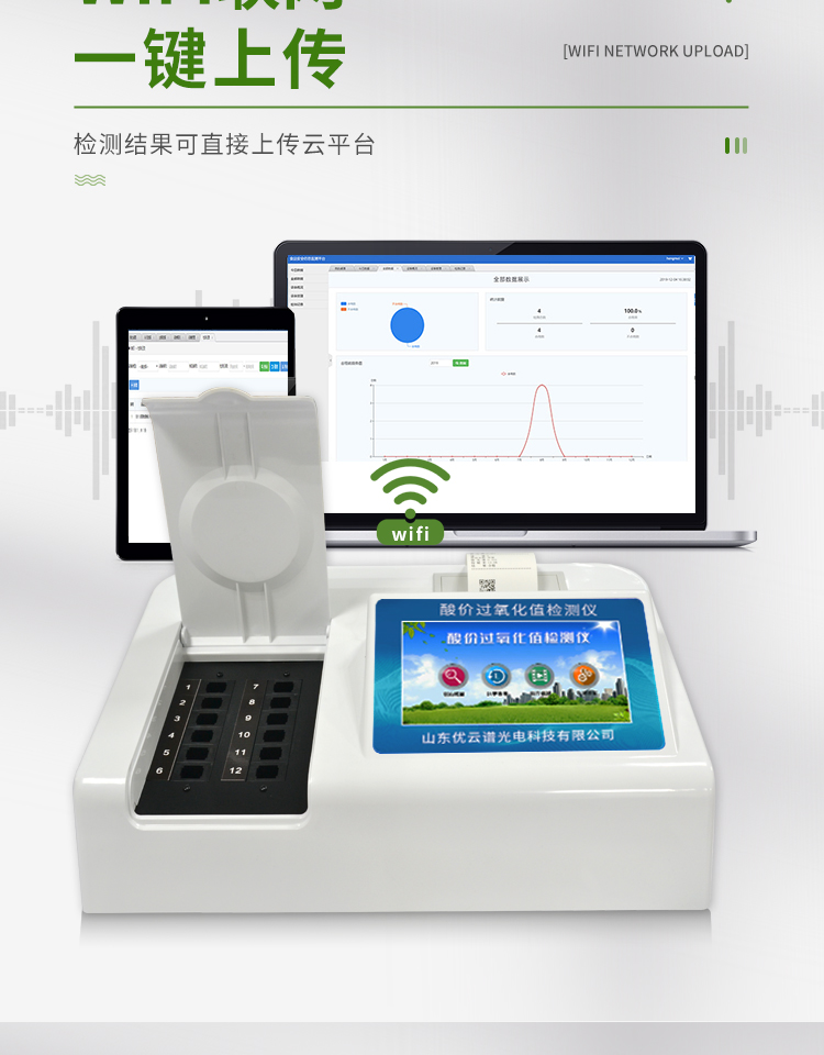 食用油酸價過氧化值檢測儀為集成化油品快速檢測分析設備,能夠快速檢測食用植物油、食用豬油、花生油、葵花油、米糠油、食品、肉制品中的酸價、過氧化值含量;通過檢測可確定植物油是否符合國家標準或是否為酸敗油、劣質油、地溝油等。儀器預留其他項目檢測程序和端口,根據日后需求可方便的自主增加檢測項目。日后可升級為檢測水產品、面制品的綜合類型儀器。