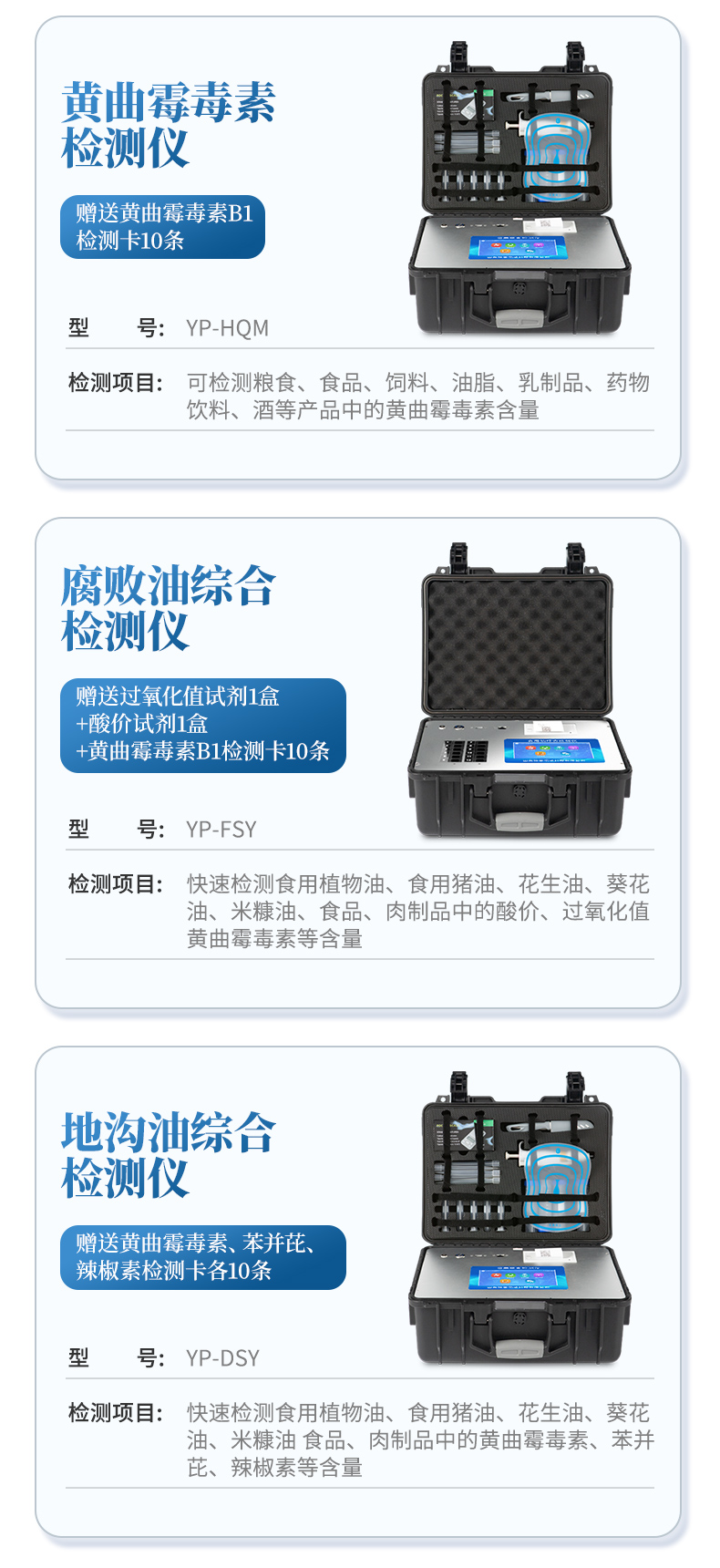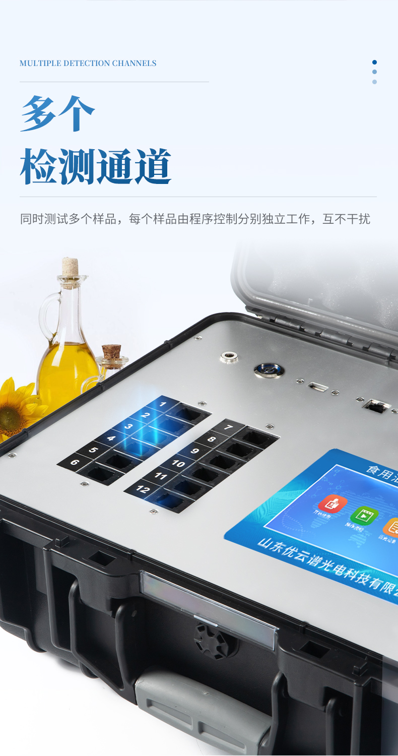 食用油安全檢測儀為集成化油品快速檢測分析設備,能夠快速檢測食用植物油、食用豬油、花生油、葵花油、米糠油、食品、肉制品中的黃曲霉毒素,苯并芘,辣椒素等含量;通過檢測可確定植物油是否符合國家標準或是否為劣質油、地溝油等。