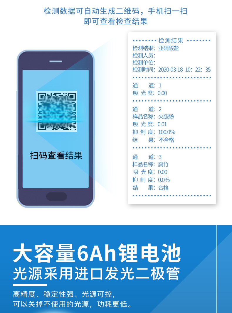 YP-Y12食品中亞硝酸鹽快速檢測儀為集成化食品安全檢測分析設備,能夠快速檢測肉類、肉類罐頭、熏肉、香腸、奶制品、泡菜、腌制蔬菜等中的亞硝酸鹽含量;該儀器是根據GB5009.33-2010《食品中亞硝酸鹽與硝酸鹽的測定》,食品中的亞硝酸鹽經過提取,與檢測試劑反應生成有色化合物,再利用亞硝酸鹽檢測儀測定其吸光度,在一定范圍內吸光度與含量成正比。通過檢測可確定食品是否符合國家標準或是否為超標毒害食品等。儀器預留其他項目檢測程序和端口,根據日后需求可方便的自主增加檢測項目。日后可升級為檢測水產品、面制品的綜合類型儀器。