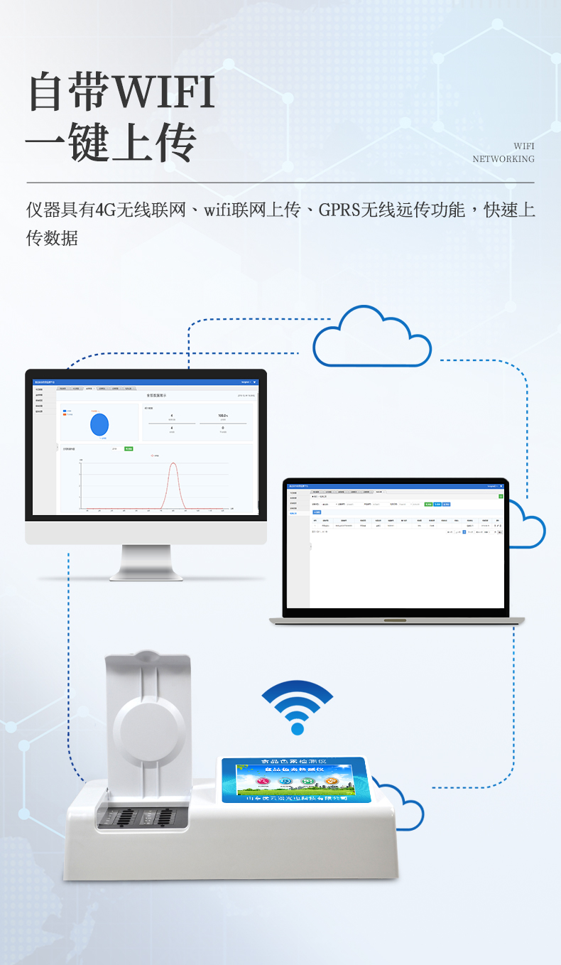 6、儀器帶有監(jiān)管平臺(tái)。數(shù)據(jù)可局域網(wǎng)和互聯(lián)網(wǎng)數(shù)據(jù)上傳,檢測(cè)結(jié)果直接傳至食品安全監(jiān)管平臺(tái)。進(jìn)行區(qū)域食品安全監(jiān)管及大數(shù)據(jù)分析處理,檢測(cè)區(qū)域食品安全長(zhǎng)短期動(dòng)態(tài),達(dá)到食品安全問(wèn)題預(yù)估、預(yù)警