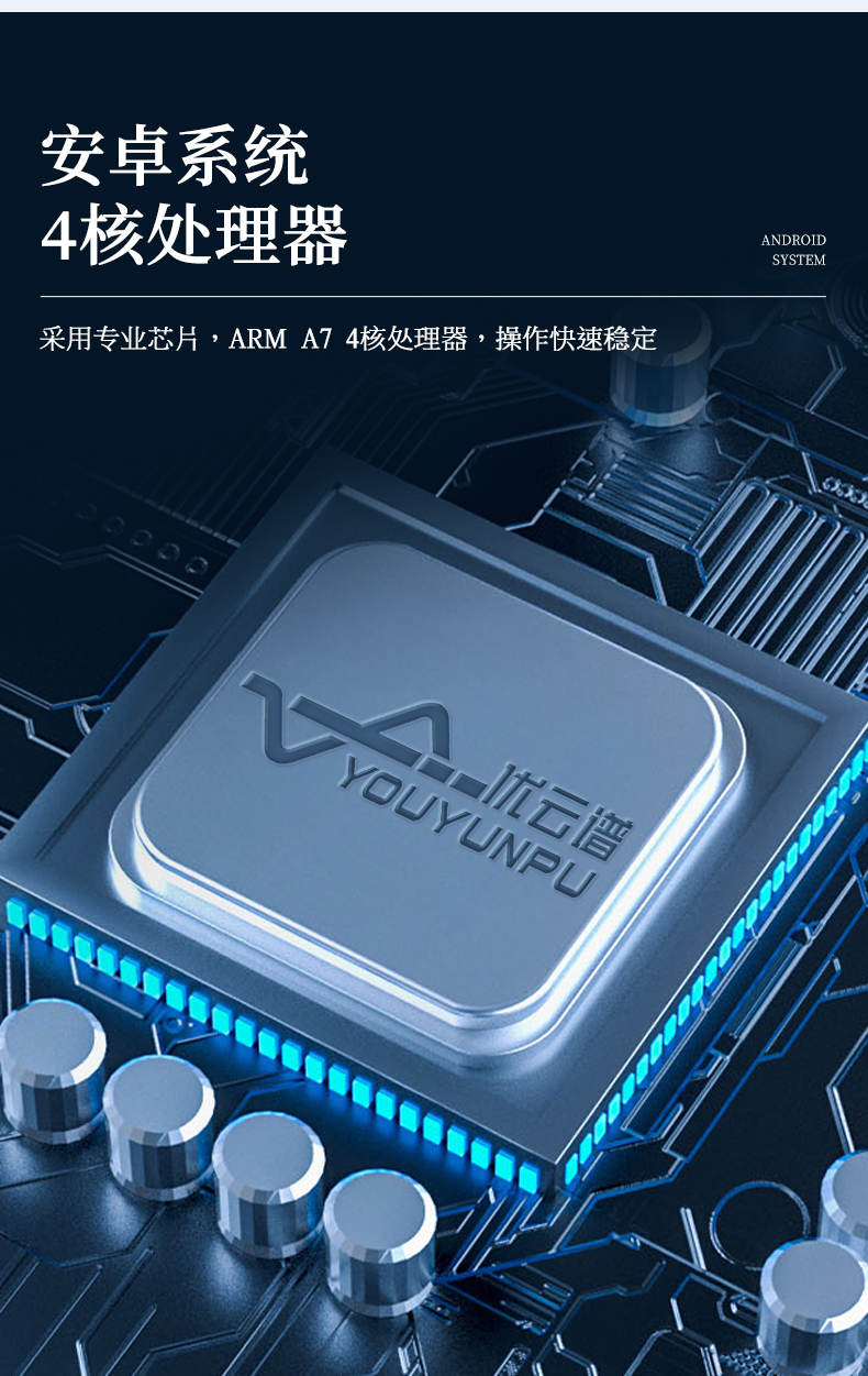 1、主控芯片采用ARM Cortex-A7,RK3288/4核處理器,主頻1.88Ghz,運(yùn)轉(zhuǎn)速度更快速,穩(wěn)定性更強(qiáng)。