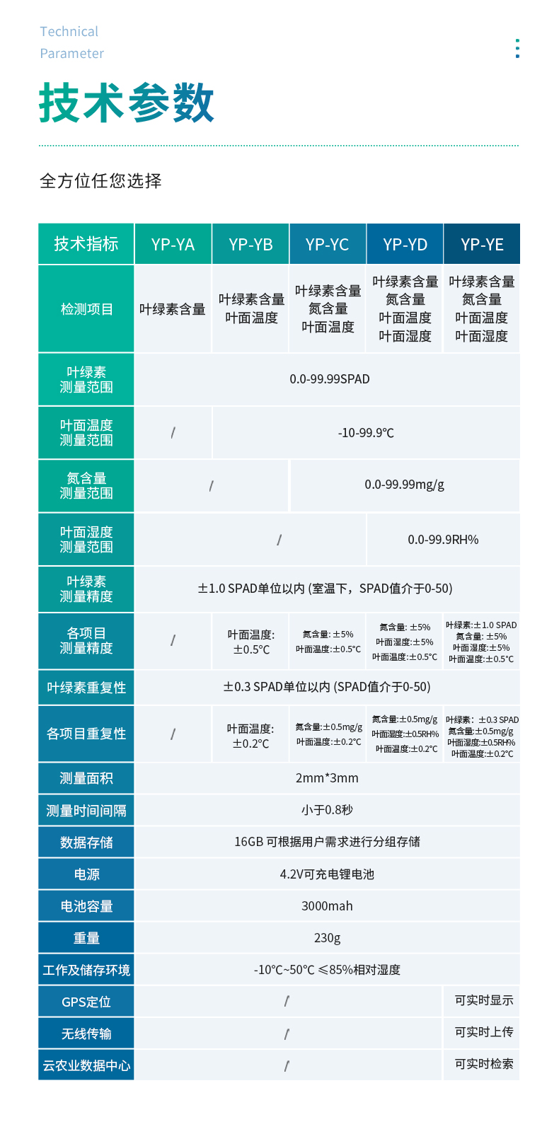 3.測量精度:±1.0 SPAD單位以內 (室溫下,SPAD值介于0-50)