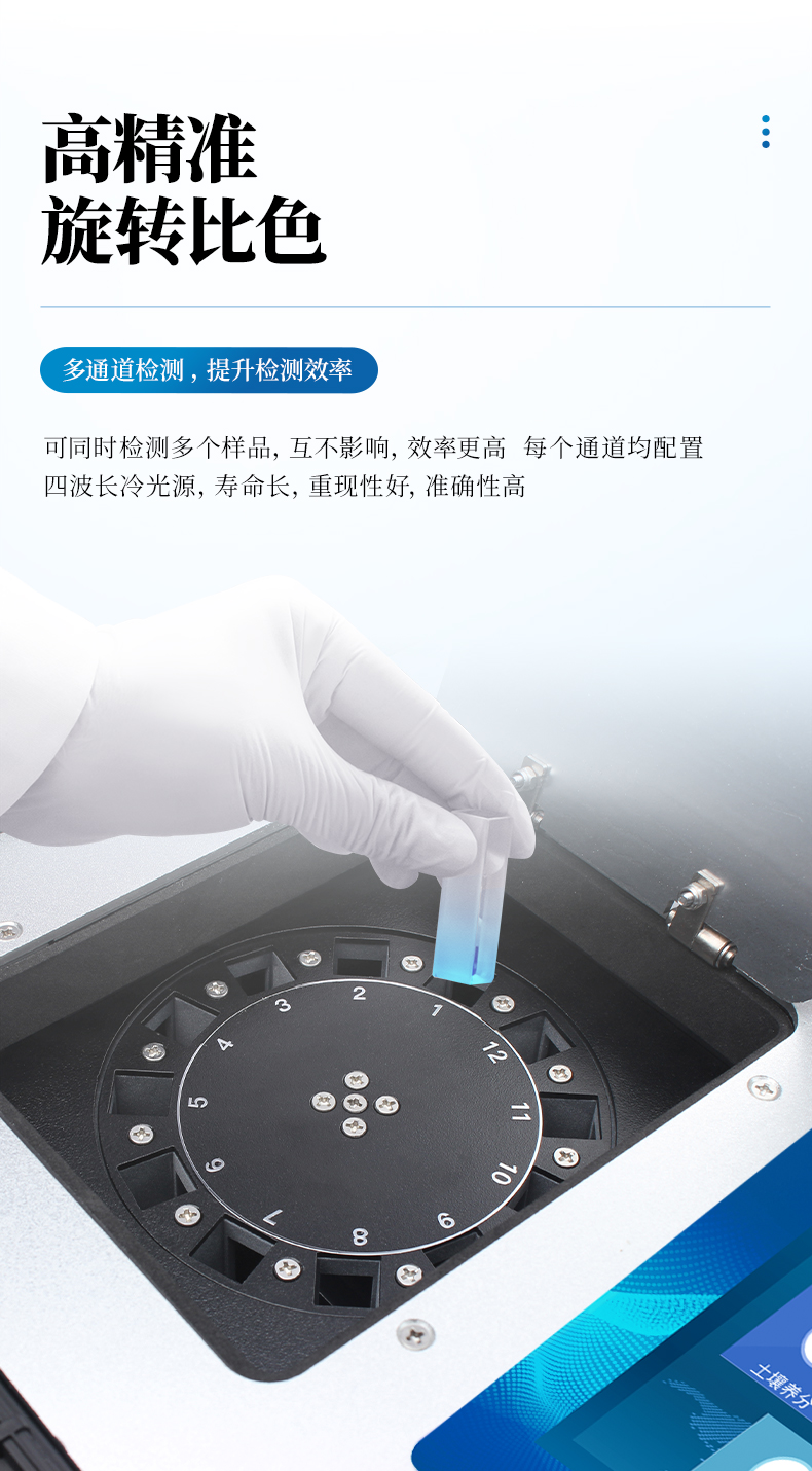 3、12個旋轉檢測通道,一次性可快速檢測12個樣品,極大提升檢測效率,降低檢測成本。