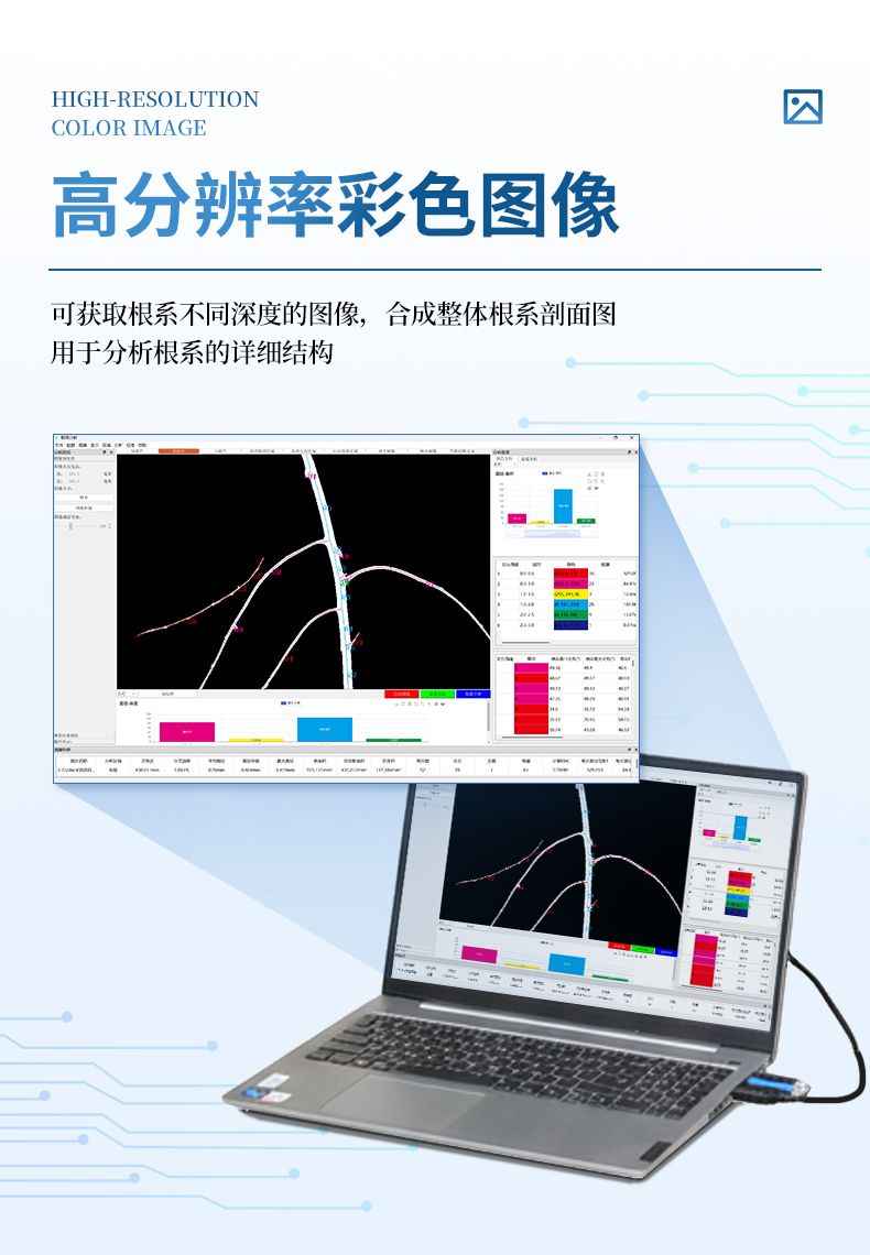 可獲取根系不同深度的圖像,合成整體根系剖面圖;