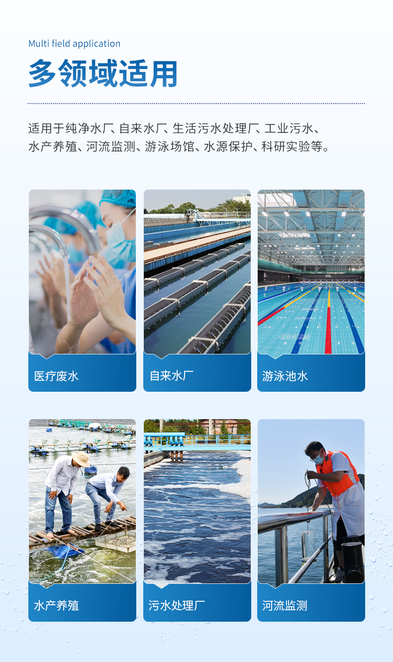 | 1 | 余氯 | 0.04~15mg/L | HJ 586-2010 DPD比色法 |