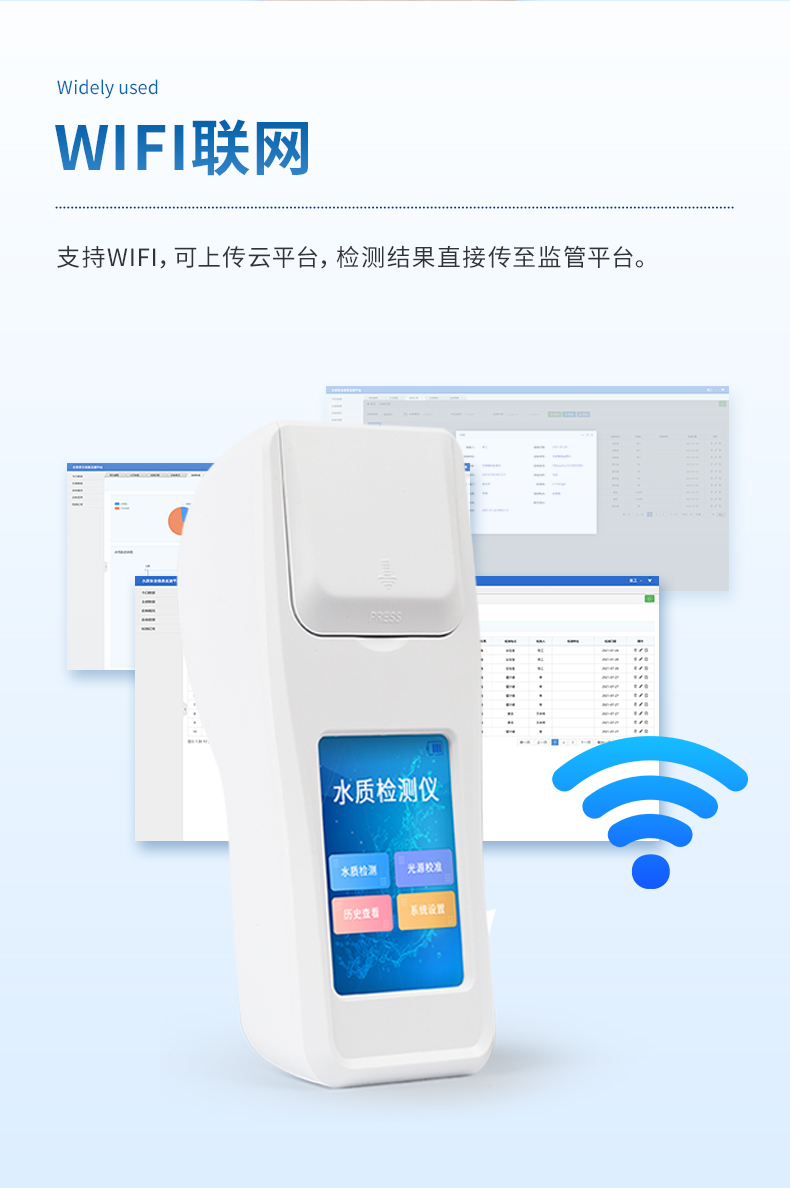 ②配置云監控平臺,檢測結果可直接無線傳至平臺,進行水質長短期分析,輔助管理。