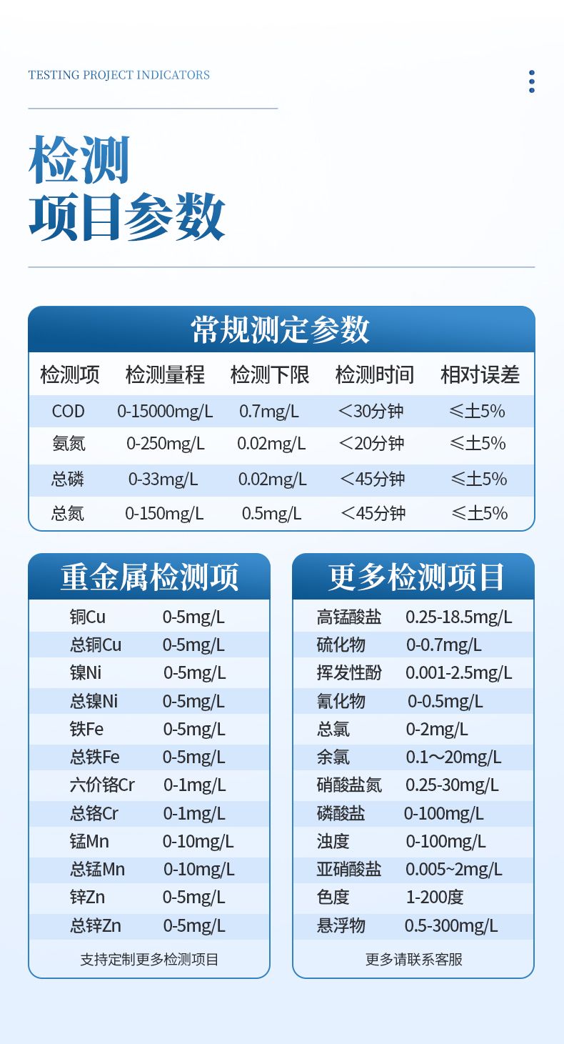 檢測方法:水質(zhì)化學(xué)需氧量快速檢測法;