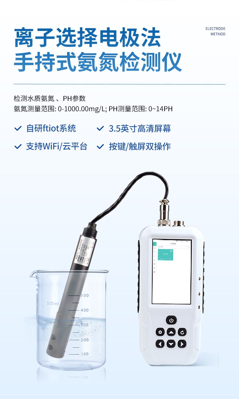 智能氨氮快速檢測(cè)儀主要檢測(cè)水體中的氨氮含量;設(shè)備內(nèi)置多個(gè)光源,對(duì)應(yīng)不同的檢測(cè)波長(zhǎng),可同時(shí)滿足納氏試劑法和水楊酸法檢測(cè)水體中的氨氮含量。納氏試劑法參考環(huán)境標(biāo)準(zhǔn)HJ 535-2009 《水質(zhì) 氨氮的測(cè)定 納氏試劑分光光度法》,水楊酸法參考環(huán)境標(biāo)準(zhǔn)HJ 536-2009 《水質(zhì) 氨氮的測(cè)定 水楊酸分光光度法》。本儀器兼具智能數(shù)據(jù)分析功能,圖表、列表顯示數(shù)據(jù),分析一目了然;高清晰度彩色液晶觸摸顯示屏,Android智能操作系統(tǒng),中文顯示界面,中英文鍵盤,人性化操作,使用更簡(jiǎn)單。