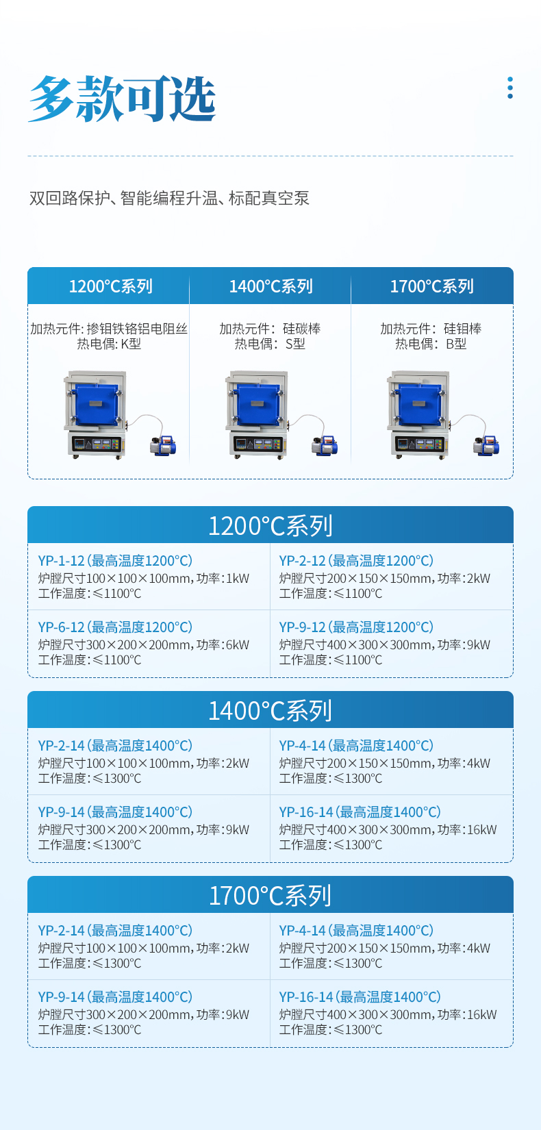 我司在高溫電爐領域有著超過15年的經驗、主營產品包括:箱式爐、氣氛爐、管式爐、坩堝爐、升降爐、臺車爐、牙科義齒爐、晶體生長爐、真空爐、石墨爐、排膠爐、等300°-3000°高溫設備,并可提供各種非標定制,方案合理即可