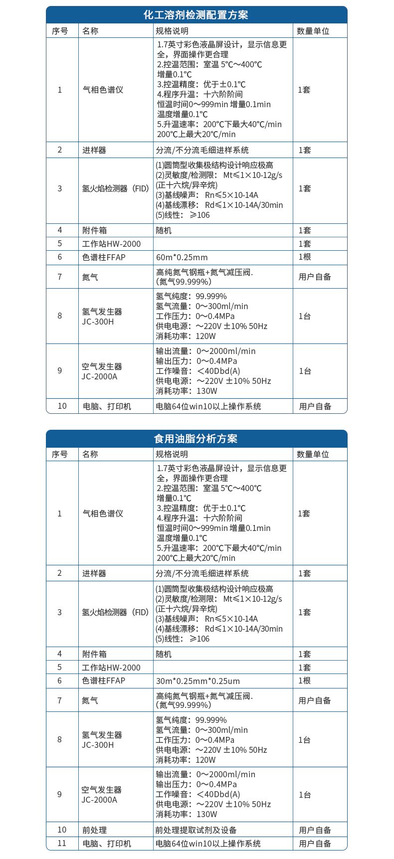 | 檢測器 | 氫火焰檢測器(FID) (1)圓筒型收集極結構設計響應極高 (2)檢測限:Mt≤5×10-12g/s (正十六烷-異辛烷溶液); (3)噪音:≤5×10-14A (4)漂移:≤1×10-13A/30min (5)點火方式:自動點火 | 1套 | ||
