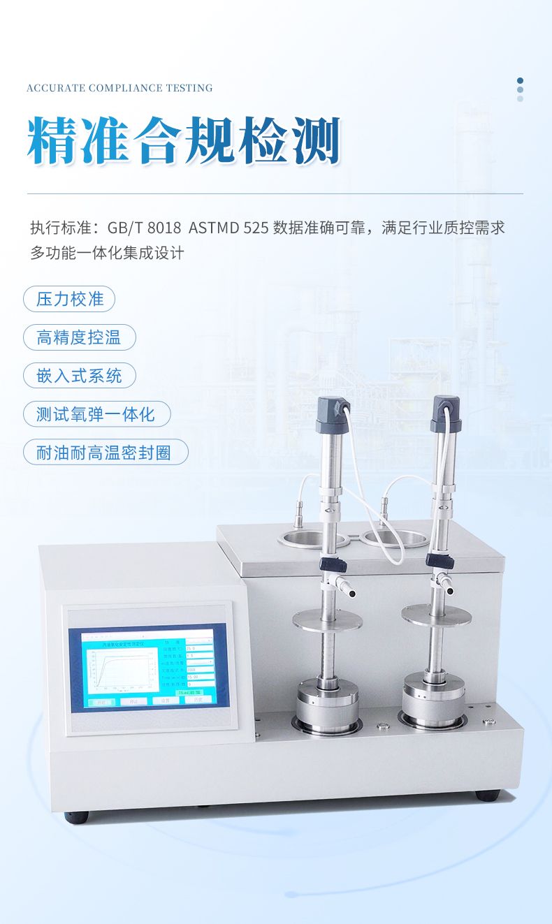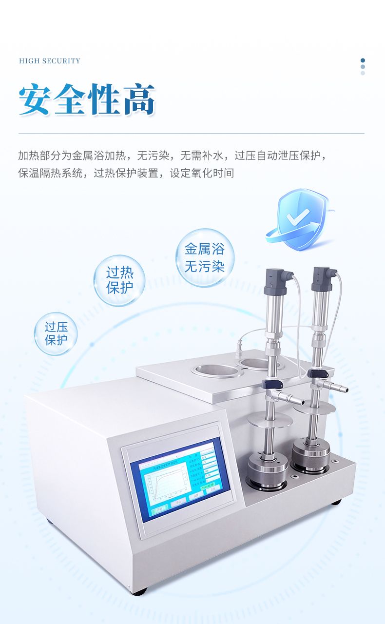 (5)儀器具有設定氧化時間功能,根據國家標準如果樣品出現緩慢氧化,到達設定時間后,儀器自動計算出該時間下的最高到最低壓力降,作為實驗數據。