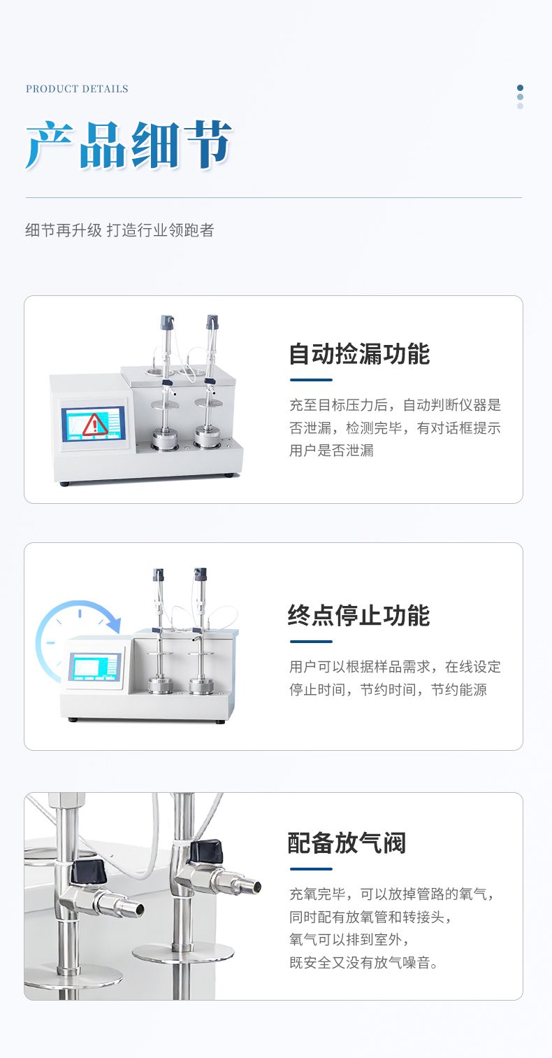 (2)儀器具有自動充放氧和手動充放氧功能,同時配有減壓閥,保證壓力穩定準確,用戶可以方便快捷完成充放氧。