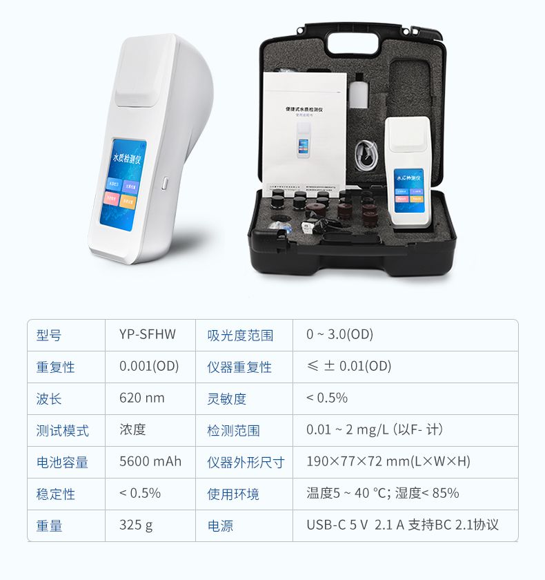 手持式水質氟化物檢測儀是一款基于氟試劑分光光度法開發的便攜式專業設備,專為快速、準確評估水質安全而設計。