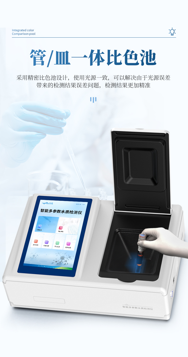 3、采用精密比色池設(shè)計(jì),使用光源一致,可以解決由于光源誤差帶來的檢測結(jié)果誤差問題,檢測結(jié)果更加精準(zhǔn)。