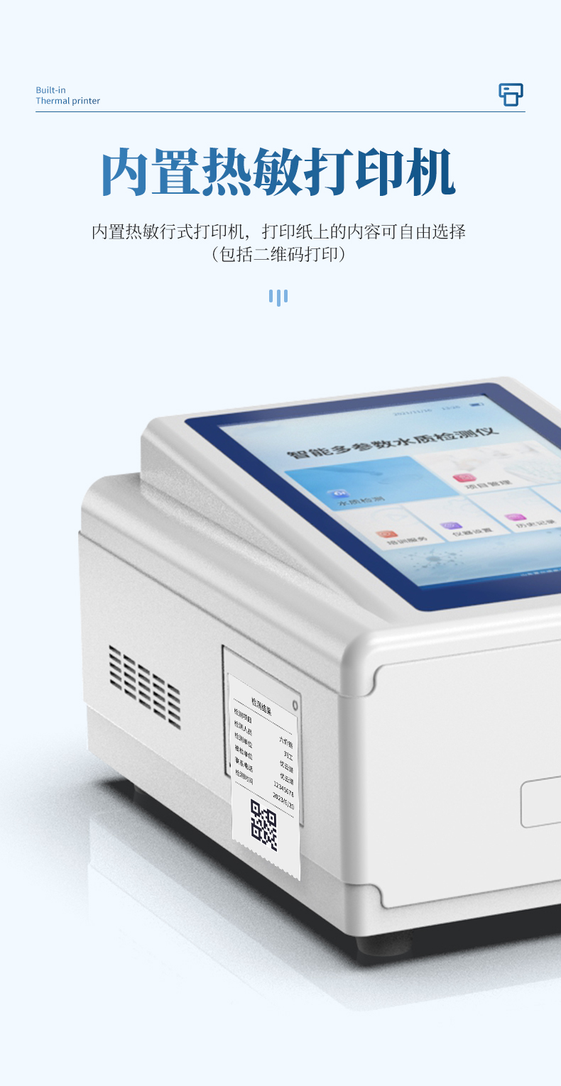 10、內(nèi)置熱敏行式打印機(jī),打印紙上的內(nèi)容可自由選擇(包括二維碼打印);