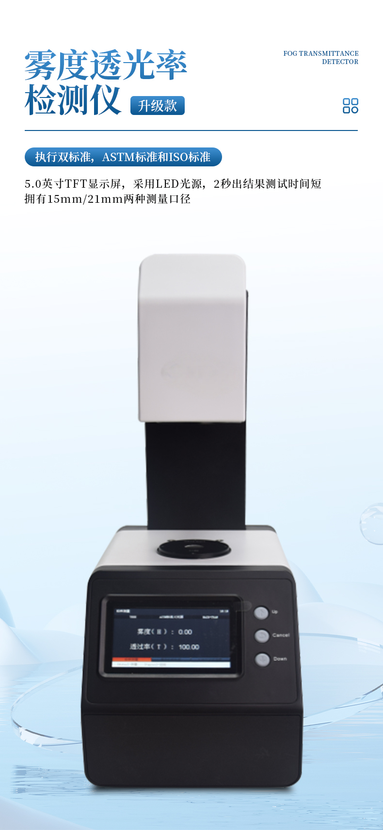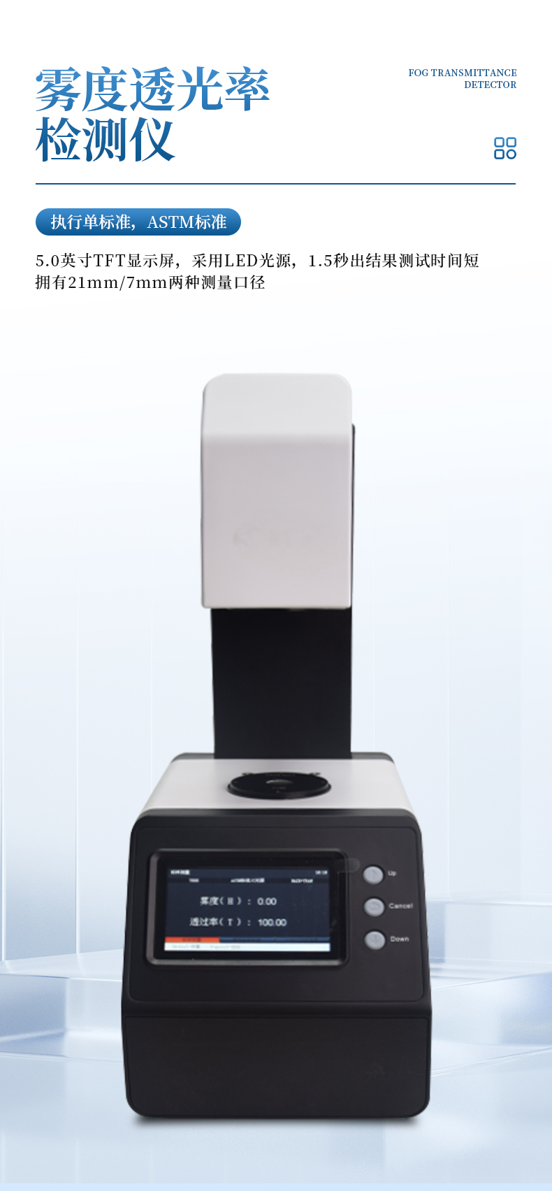 霧度透光率綜合儀是一款采用ASTM標(biāo)準(zhǔn),雙口徑(21mm/7mm)適用于測定塑料、薄膜、玻璃、LCD面板、觸摸屏等透明、半透明平行平面材料的霧度、總透光率的儀器。測試樣品有,AG玻璃,眼鏡,手機蓋板,手機殼,薄膜,燈罩等, 廣泛應(yīng)用于實驗室、工廠、或現(xiàn)場操作,足以在幾乎所有應(yīng)用領(lǐng)域的質(zhì)量控制中實現(xiàn)最佳的霧度測量。