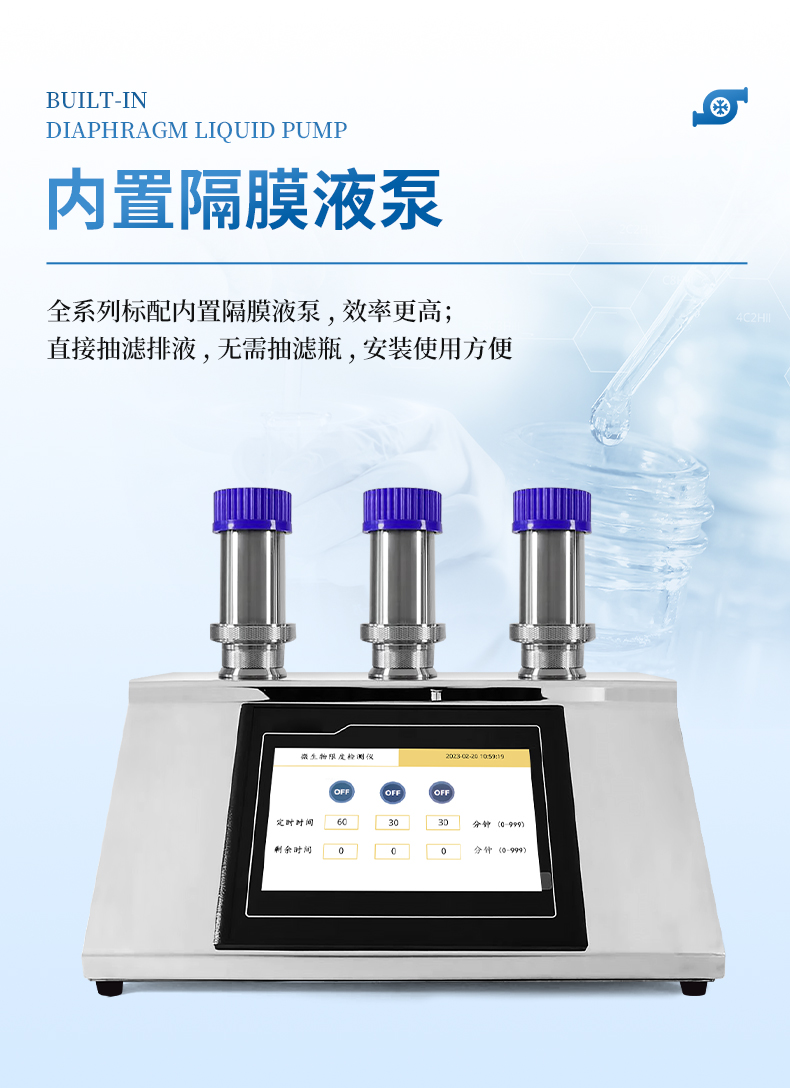 抽濾方式內置隔膜液泵負壓抽濾,無需抽氣瓶