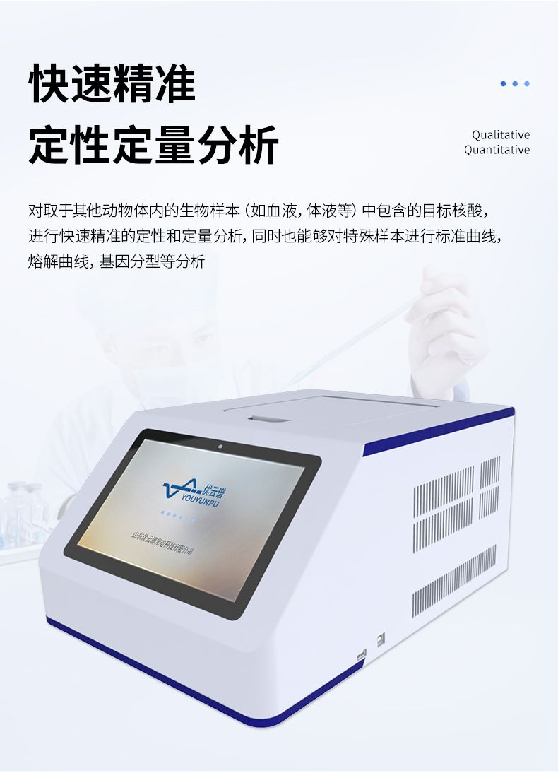 是一種非常便攜的方式提供8個樣本的實時熒光定量 PCR檢測,適合動植物疫病,食品安全,生物科研實驗室等日 常低通量檢測需求。儀器可放置于快檢箱,保障現(xiàn)場快速分子 檢測需求。
