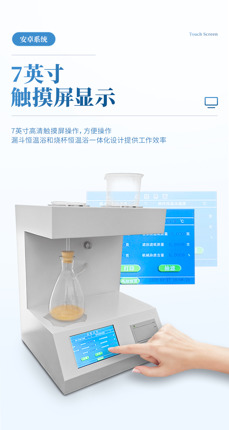 1.7寸高清觸摸屏操作,方便操作,漏斗恒溫浴和燒杯恒溫浴一體化設(shè)計提供工作效率