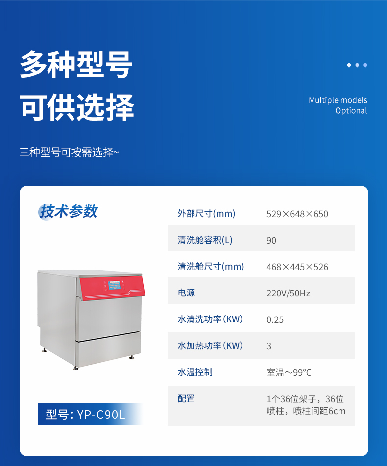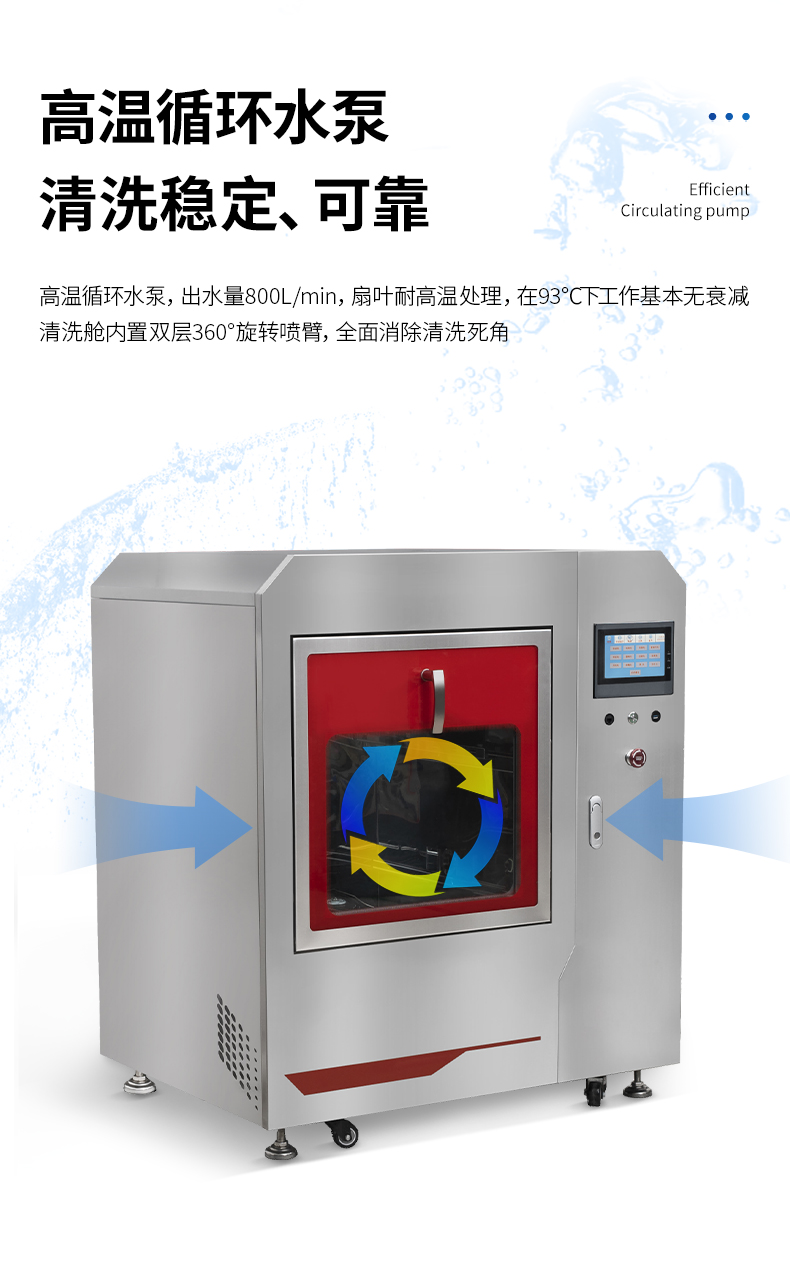 1.1全自動清洗,利用高溫、高壓水及清洗液持續噴淋器皿內外表面,清洗、烘干按照程序自動完成。