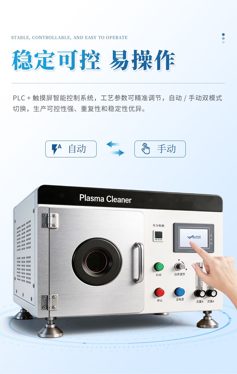 YP-ZK系列等離子清洗機定位于小規(guī)模生產(chǎn)及各大院校科學實驗使用,廣泛應用于電 子、太陽能、汽車、紡織、包裝印刷、生物醫(yī)療及通用行業(yè),其特點為處理效率高、重復性和穩(wěn)定性良好,操作方便,工藝參數(shù)多樣性,執(zhí)行多樣化任務,適用于清洗、活化、提高粘結力、附著力及刻蝕等工藝,并可根據(jù)客戶不同需求量身定制專業(yè)、高效、穩(wěn)定的解決方案。