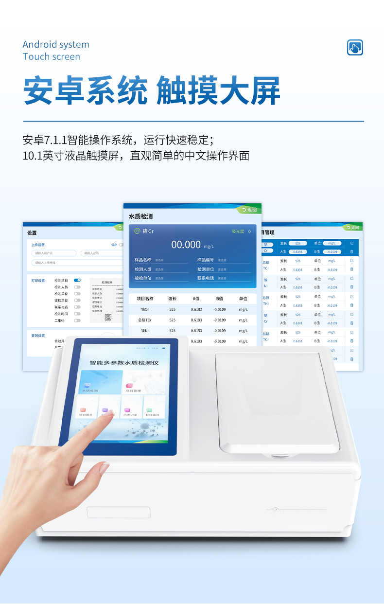 2、10.1英寸液晶觸摸屏顯示,人性化中文操作界面,讀數直觀、簡單。