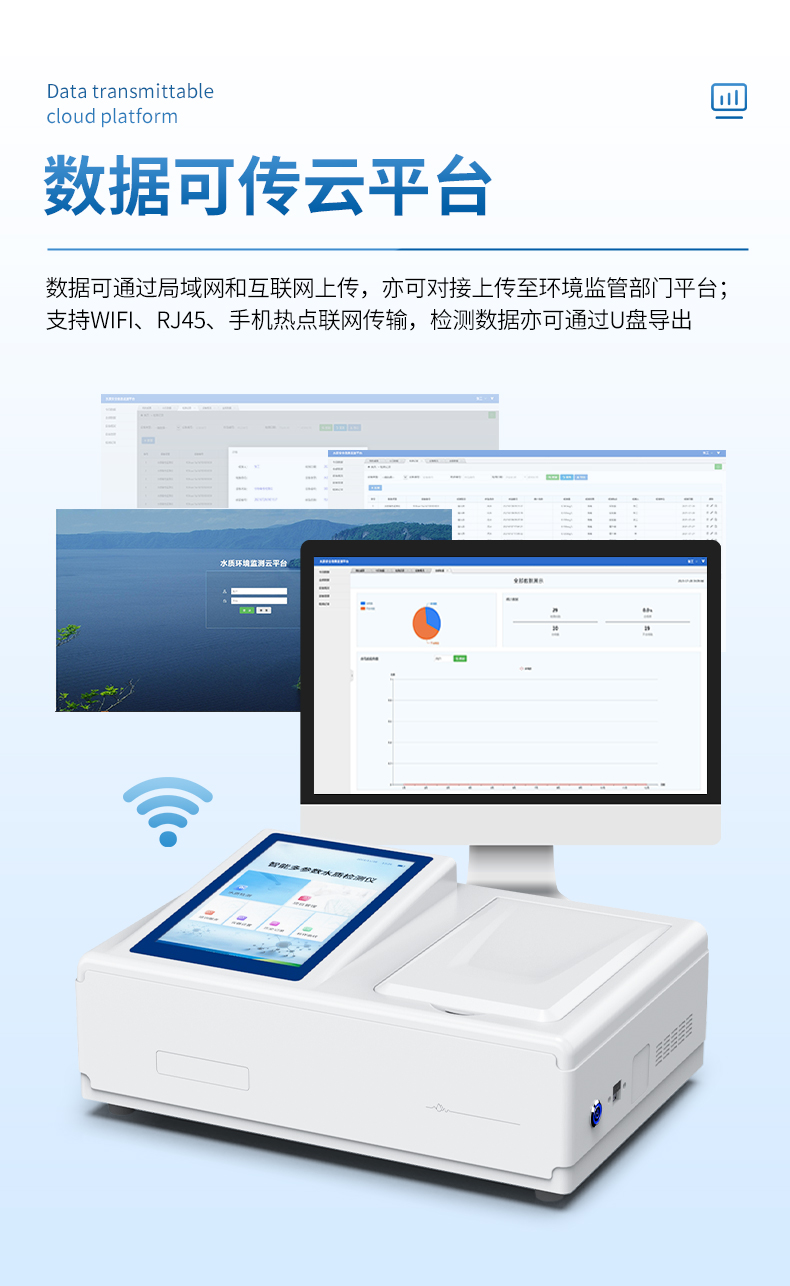 9、儀器帶有監管云平臺,數據可通過局域網和互聯網上傳,亦可對接上傳至環境監管部門平臺。