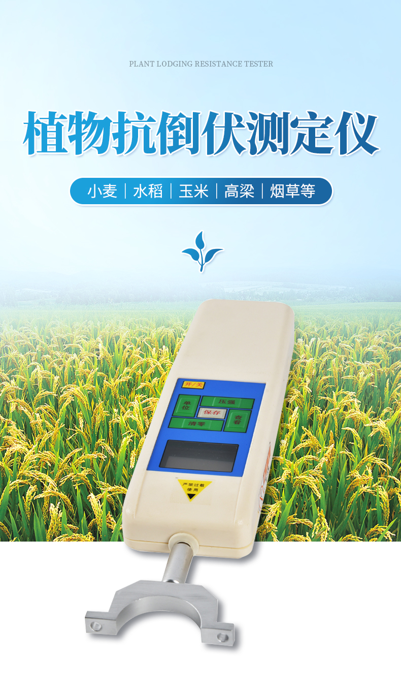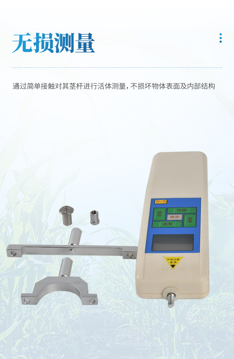 植物抗倒伏測定儀是決定農作物抗倒伏能力的一個關鍵因素,玉米,高梁、煙草等的植物的倒伏給農作物的機械收割造成很大的困難。造成大量的浪費。另外,農作物的倒伏導致光照不充分,使其生產量受到極大的限制。在作物生長的各個階段對其莖桿進行活體測量,進而根據莖桿纖維層的抗彎阻力與抗倒伏能力的相關性對群體測量數據進行統計處理,對作物的栽培和育種具有重要意義。