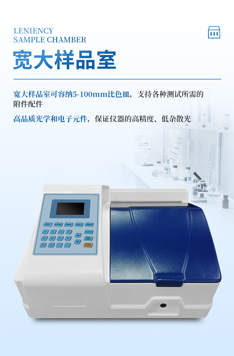 ◆ 寬大樣品室,可容納5-100mm比色皿,支持各種測試所需的附件配件